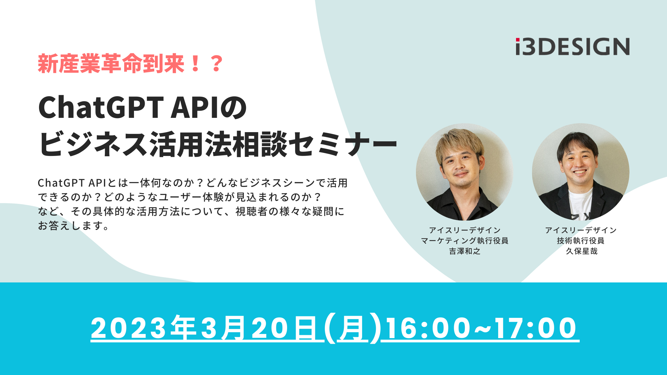 【3月20日(月)16時開催】ChatGPT APIはどのようなビジネスシーンで活用できるのか?具体的に何ができるのか?など、その疑問と不明点をこのセミナーでクリアにしましょう