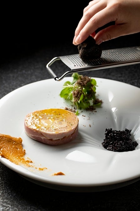 - 豚肉&トリュフのテリーヌ・発酵ブラックライス&ブロンドチョコレートモレソース