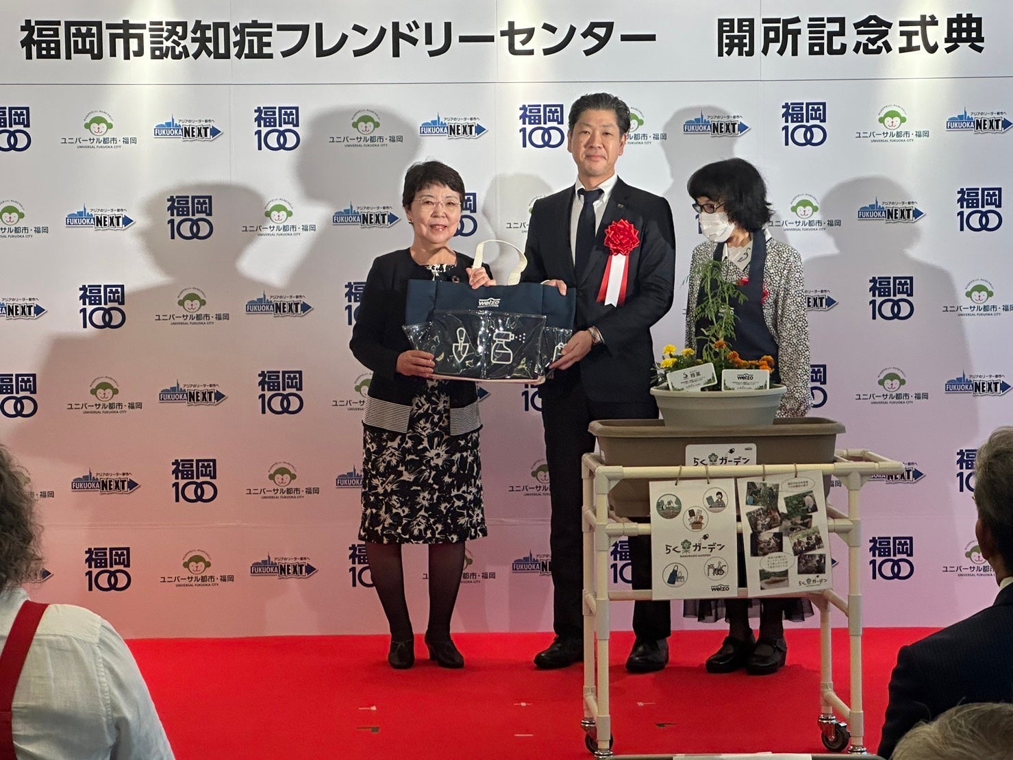 2023年9月15日(金)に福岡市認知症フレンドリーセンターが開所いたしました。その開所に合わせ、福岡市オレンジパ ートナーズの会員「株式会社翔薬様」との協働により、センター内にプランター花壇「らく楽ガーデン」を設置しました。