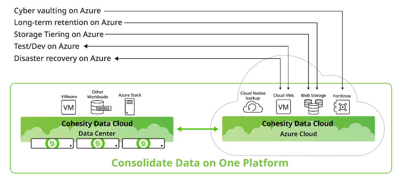 Cohesity DataProtect Cloud Edition on Azureの新しい構成: 新しい構成は、ストレージ容量とパフォーマンスを向上し、さらなるコスト削減を実現します。15種類の事前に定義された導入構成は、現在Early access機能で、オブジェクトストレージの使用を可能にします。オブジェクトストレージは、ブロックストレージよりも大容量のストレージをサポートし (1ノードあたり最大200TB)、ブロックストレージよりもコスト効率が高いため、TCOを削減できます。現在サポートされているアーリーアクセスのワークロードはVM、SQL、Physical、M365、NASです。