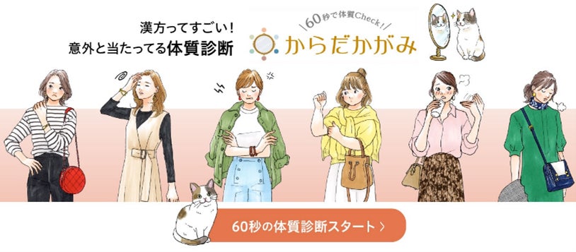また、ブース前の特設スペースでは、webサイト「からだかがみ」を使って自分の体質をチェックできます。約60秒の体質診断により、自分の体質・自分にあった食養生などクラシエアドバイザーが個別にサポート致します。60秒の自己体質診断含めて、所要時間は10分〜15分となっており、当日ご都合の良い時間にお越しくださいませ。