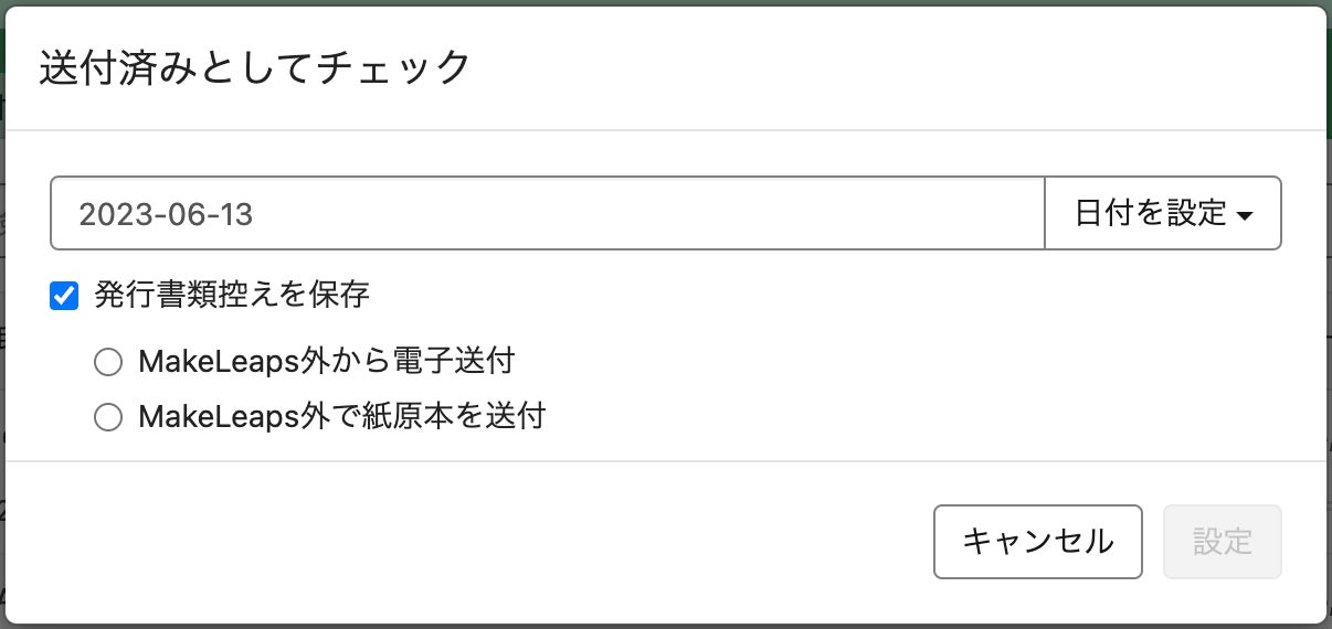 「MakeLeaps」は、改正後の電子帳簿保存法に求められる「自己が発行した書類の写し」及び「電子取引に関わる電磁的記録」における「送信(発行)」側の保存要件を満たすための機能に適用しています。しかし、その場合は「MakeLeaps」を介して送付をする「メール送付」「郵送代行(※1)」に限られていました。