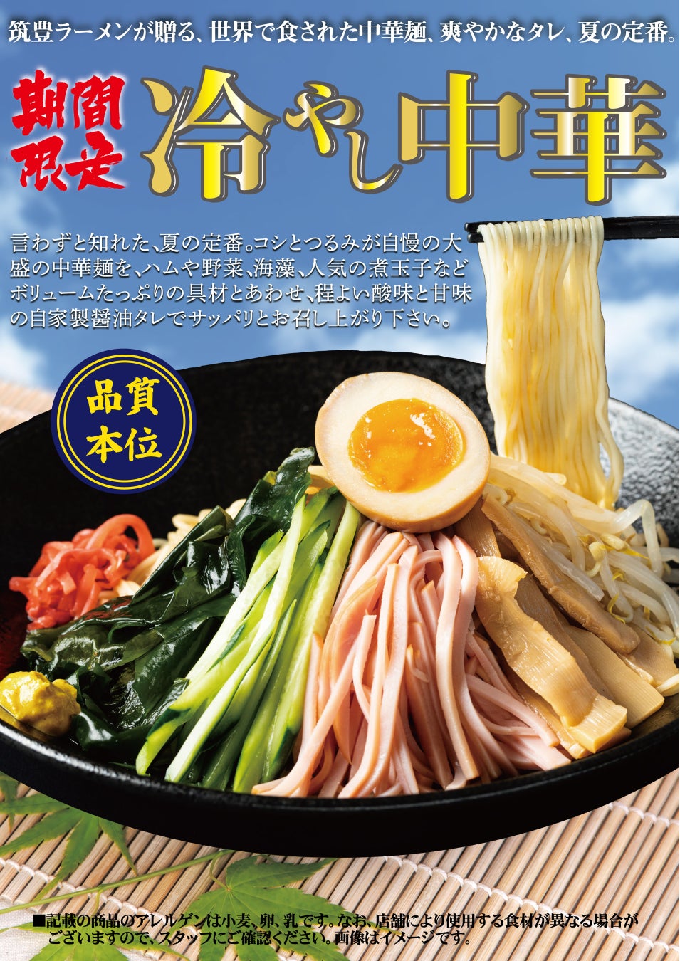 九州筑豊ラーメングループ夏季限定「冷やし中華」販売開始!