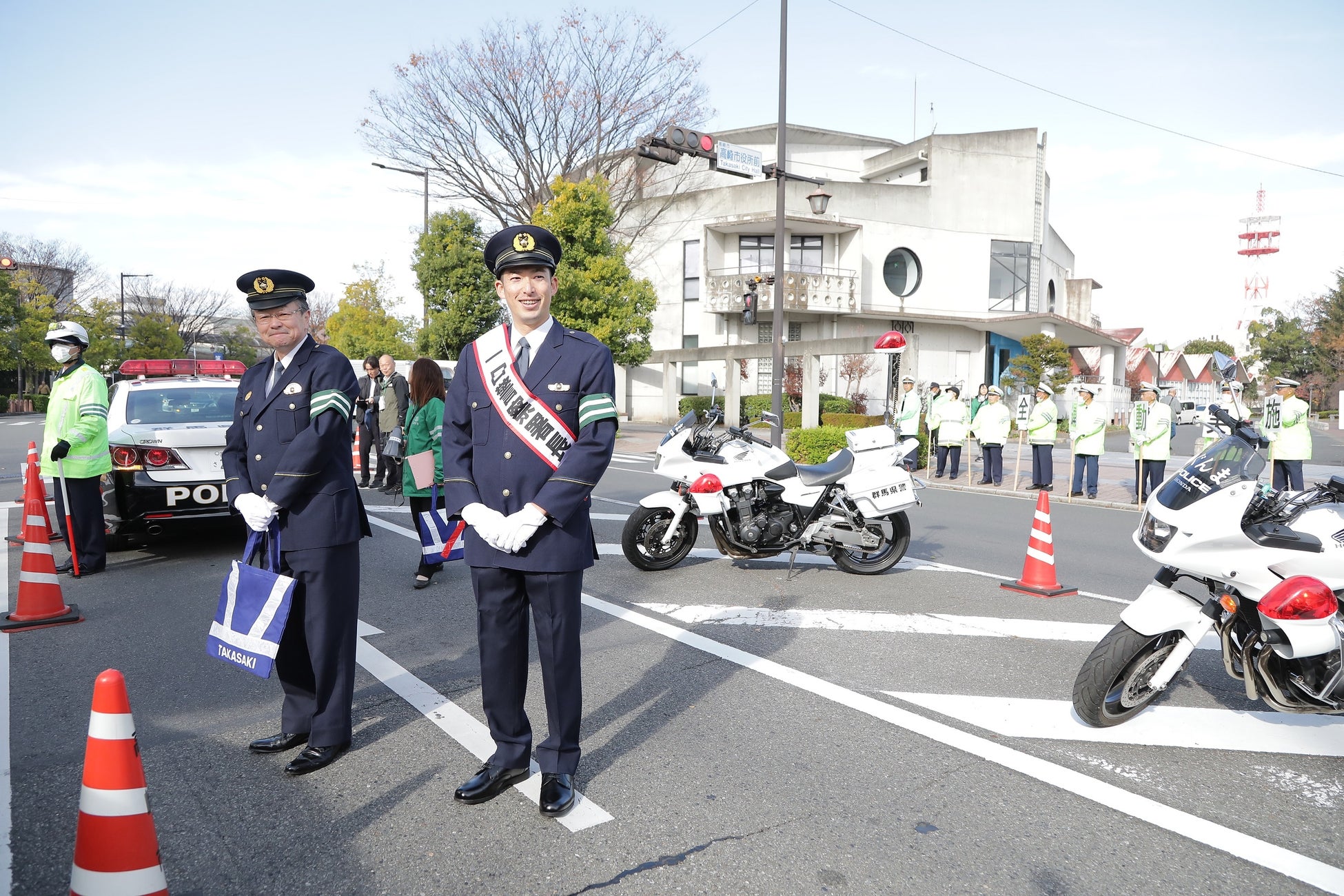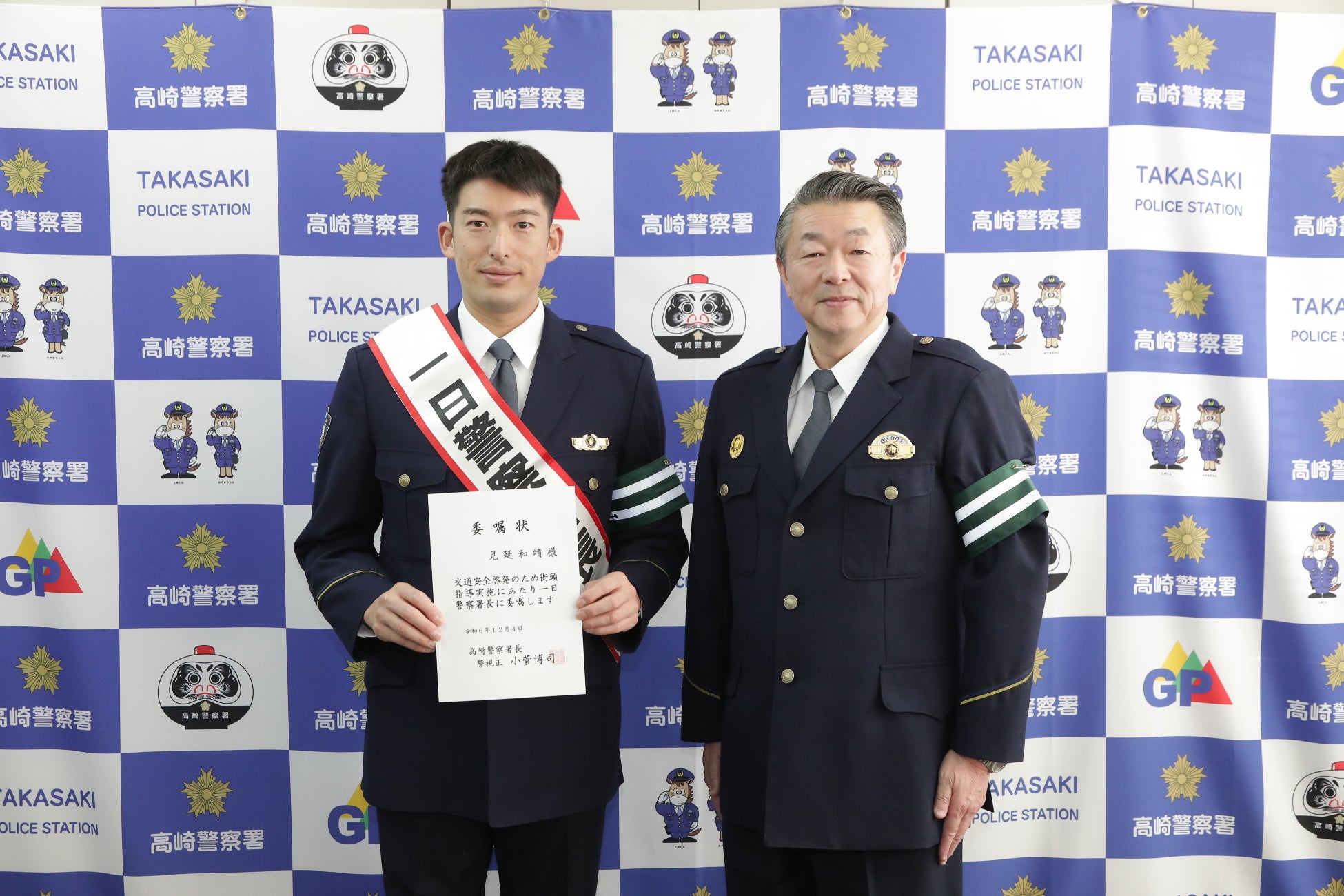 群馬県高崎警察署交通課(12月1日から実施)冬の県民交通安全運動にフェンシングエペ日本代表の見延和靖 選手が一日警察署長として交通安全の啓発活動へ協力しました。