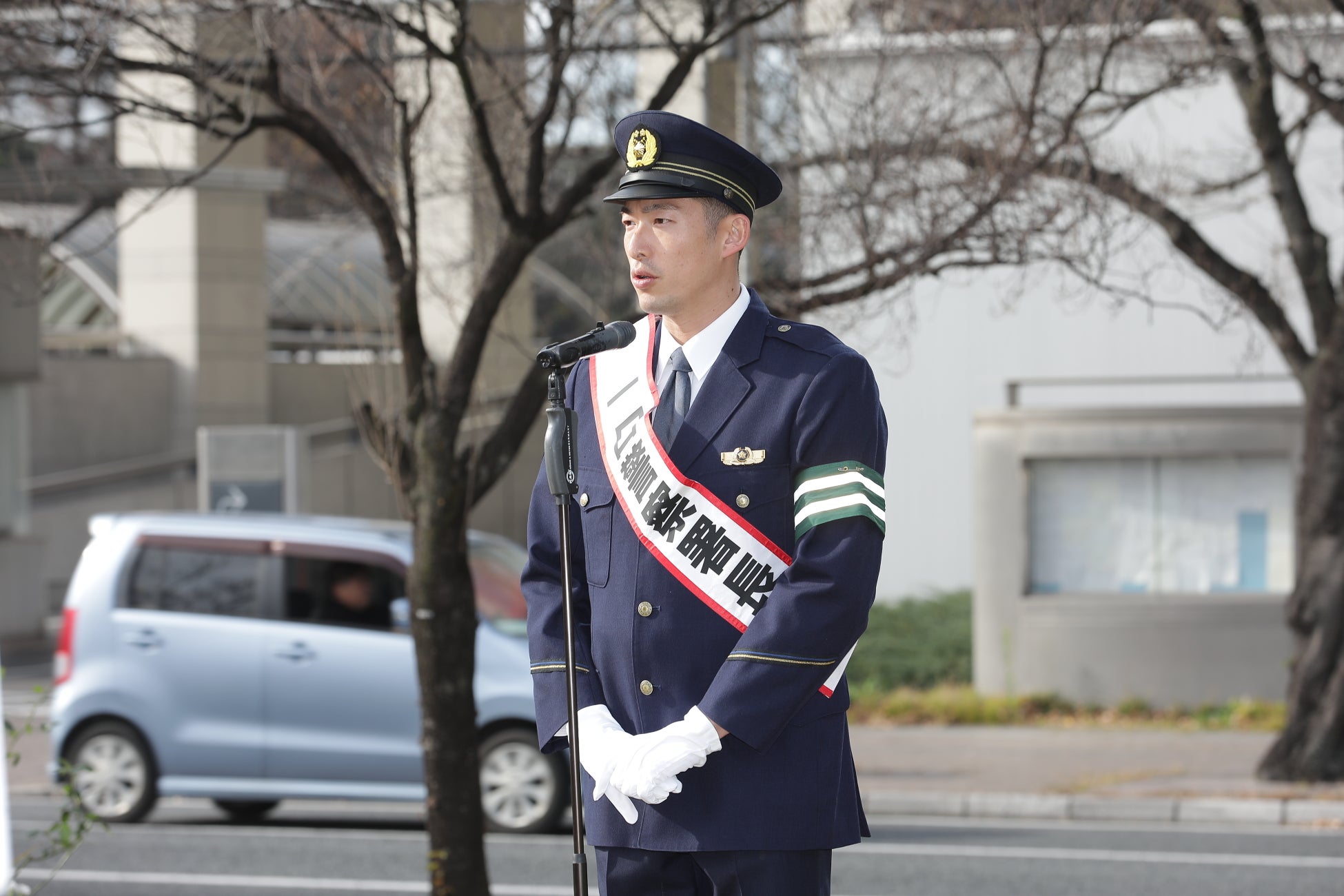 12月4日、冬の県民交通安全運動(12月1日から実施)に、フェンシングエペ日本代表である見延和靖 選手(NEXUS FENCING CLUB所属)が一日警察署長として参加しました。