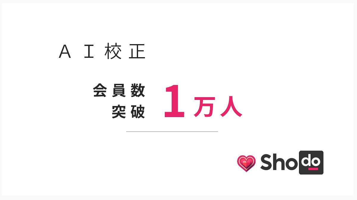 AI校正・誤字脱字チェックサービスの「Shodo(ショドー)」を運営する、株式会社ゼンプロダクツ(本社:埼玉県朝霞市)は、2023年6月5日にShodoの会員数が1万人を突破したことをお知らせします