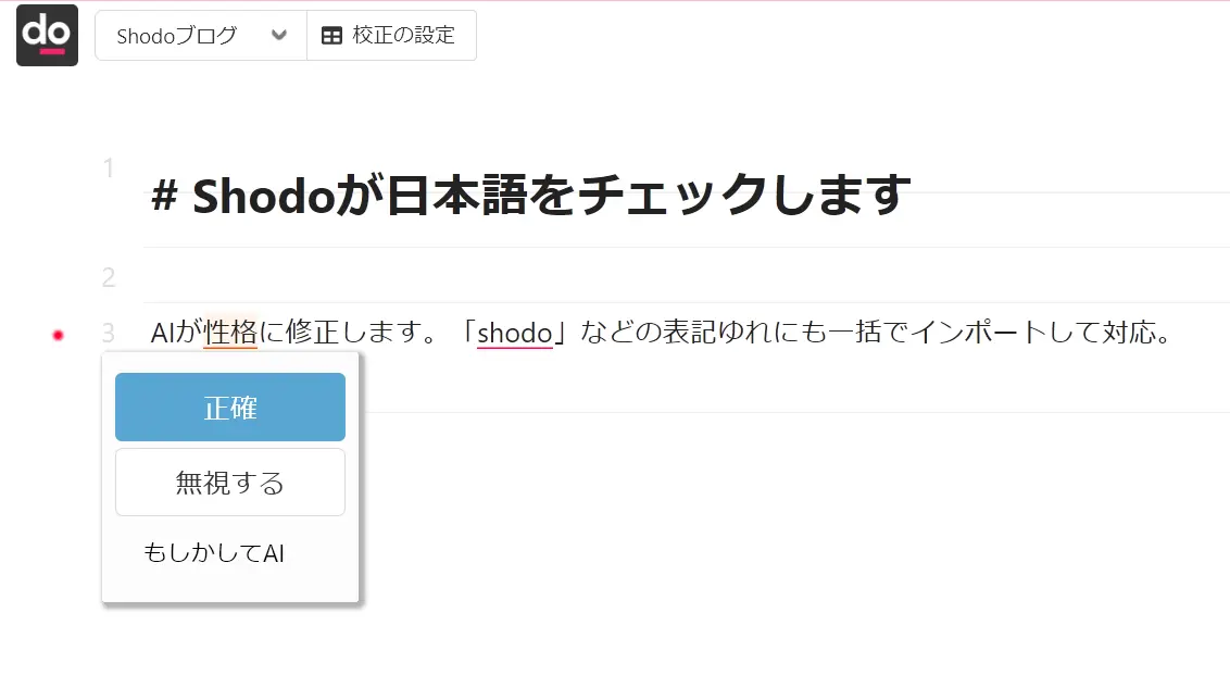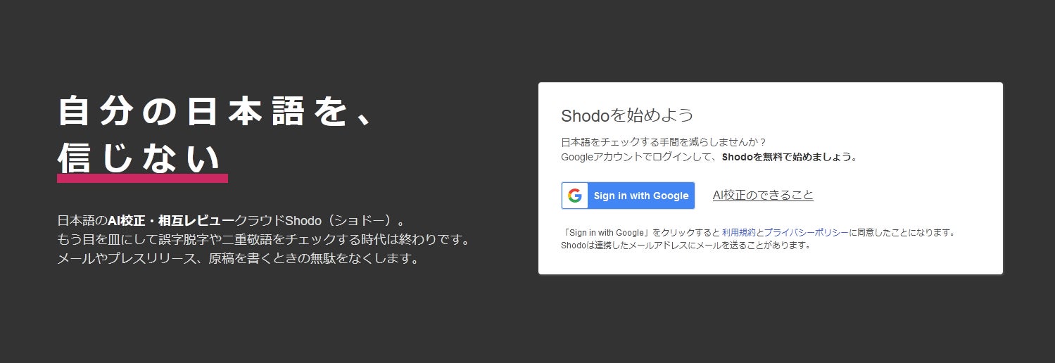Shodoは「自分の日本語を、信じない」を掲げ、AIによる文章の校正や誤字脱字のチェックを提供するクラウドサービスです。