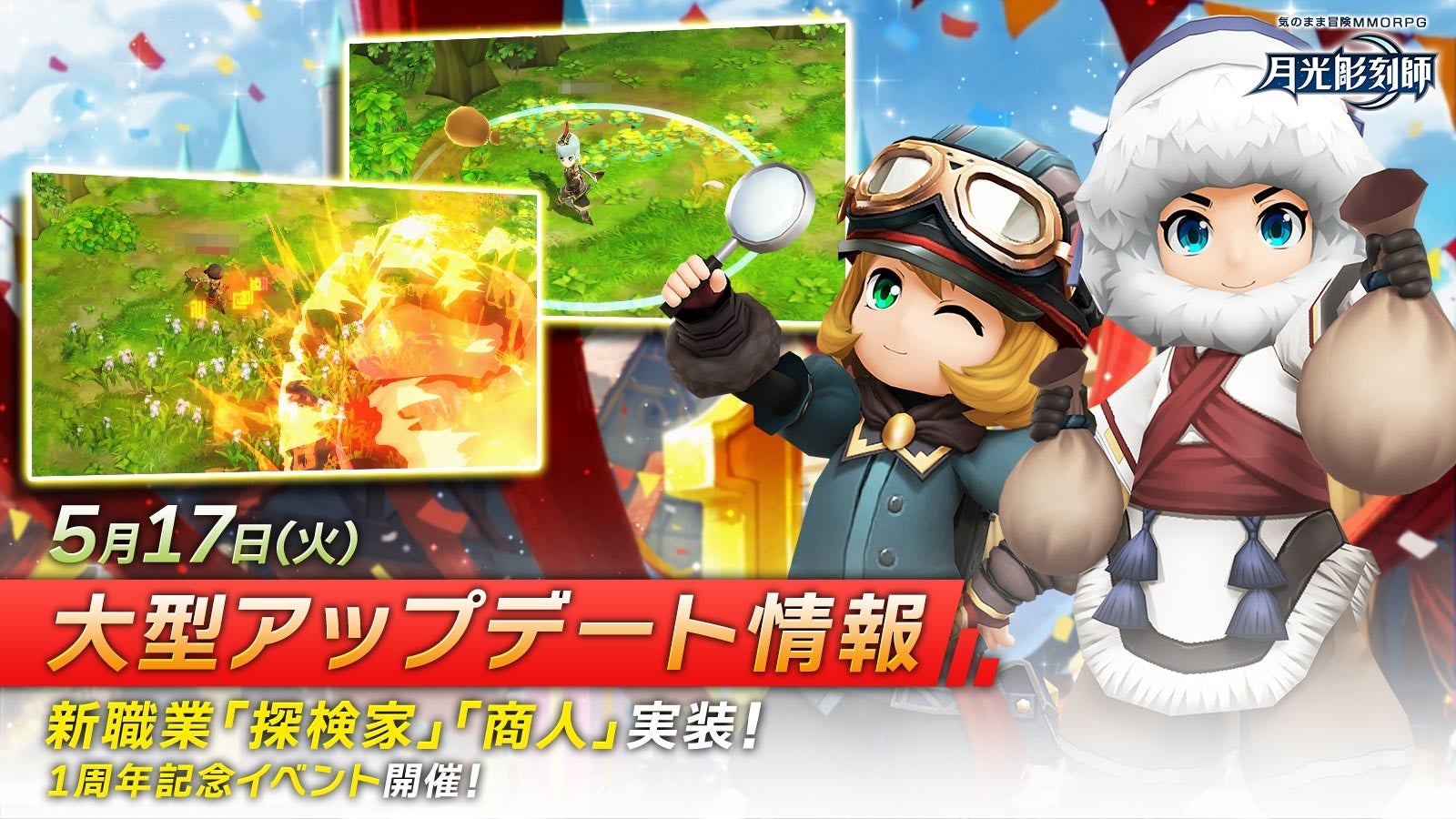 気のまま冒険MMORPG「月光彫刻師」、新職業「探検家」「商人」実装!1周年記念イベント開催!