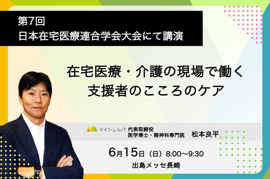 オンラインカウンセリングを提供する株式会社マイシェルパ(以下、当社)代表取締役で医学博士・精神科専門医の松本良平は、2025年6月14日(土)〜15日(日)に開催される「第7回日本在宅医療連合学会大会」にて、シンポジウム「在宅医療・介護の現場で働く支援者のこころのケア」に6月15日(日)登壇します。