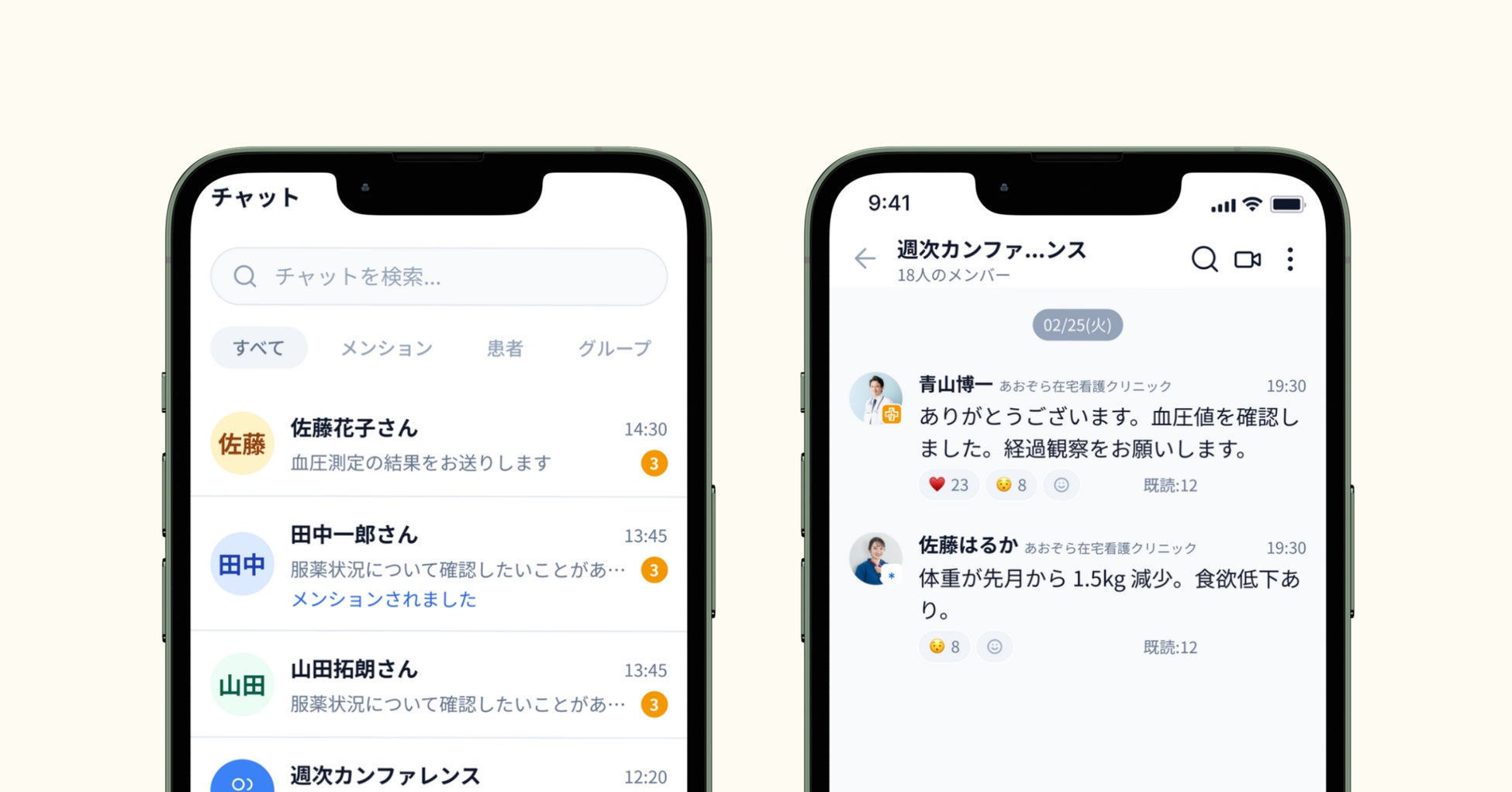 在宅医療は医師・看護師・ケアマネジャーなど多職種が関わるため、連携の質が医療の質に直結します。一方で、電話・FAX・汎用チャットなどバラバラな手段に頼るコミュニケーションが多く、情報共有の負担や、担当者による属人化が長年の課題でした。さらに、多職種間での訪問予定も紙やFAXで共有されることが多く、確認や調整に時間がかかるケースが少なくありません。
