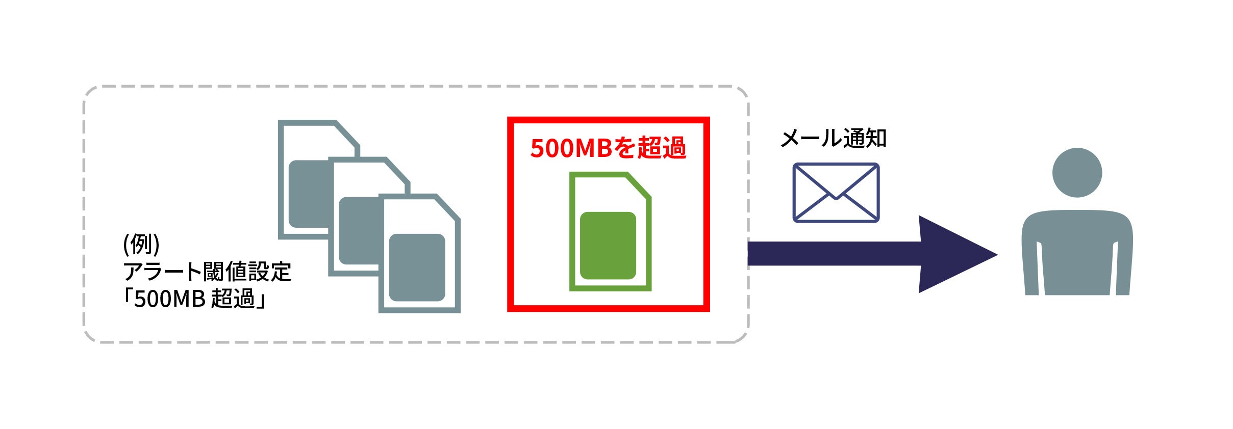 - 通知方法 :利用データ量/データ残量の閾値を超えた回線の情報をメール送信※2/コンソール画面での表示