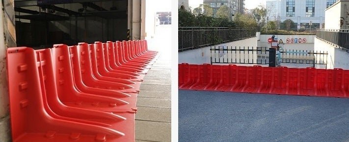 台風シーズンの中でも、最も多い災害として『水害』が挙げられますが、家屋や店舗、駐車場などの浸水被害対策として、また、冠水時にも水流を変えることで避難路の確保などにも役立つ止水板です。