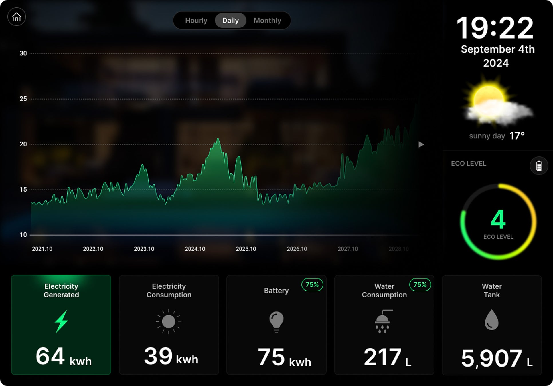 また、ユーザーインターフェース(UI)も動的に進化。発電状況や時間帯別の消費内訳などを直感的に確認できるだけでなく、「どれだけ環境に優しい暮らしができているか」も“見える化“されています。ユーザーはストレスのない範囲で、楽しみながらエコな暮らしにチャレンジできる設計となっています。