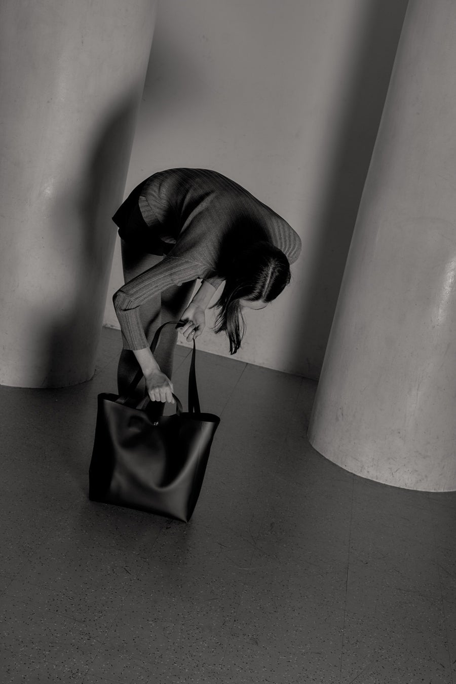紙のように、折り曲げたり、畳んだり。シームレスで作り上げたアイテムは、よりなめらかでノーブルな表情に。ミニマルな作りから、新鮮さを生み出します。