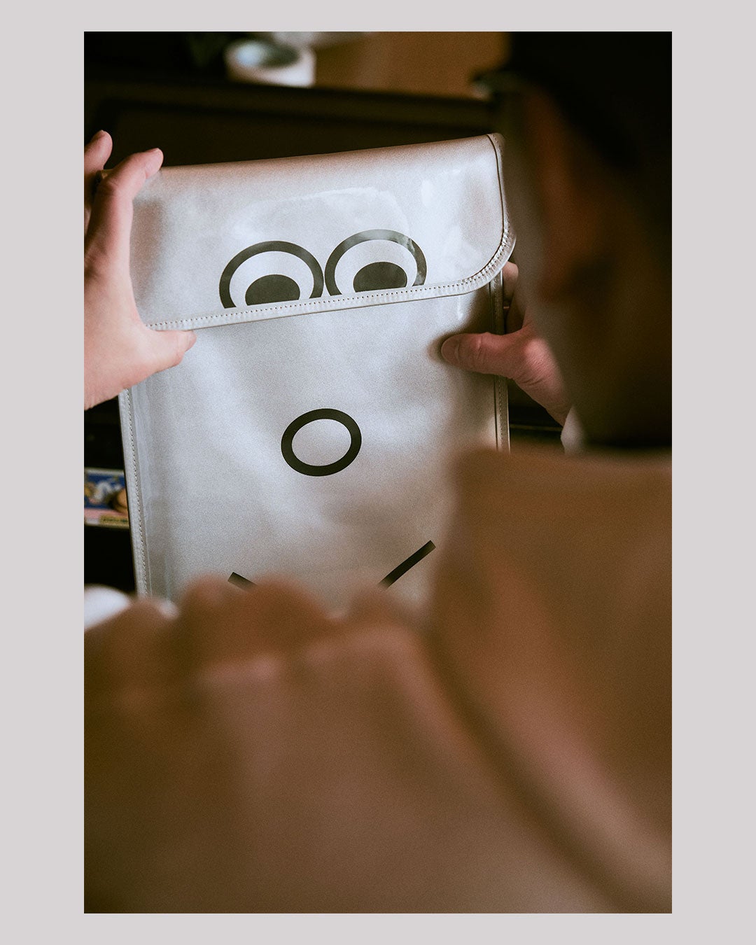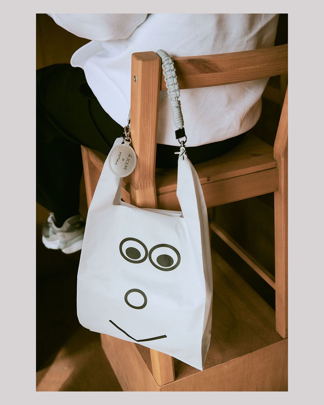 “SMILE””くるくる”を両面にプリントしたエコバッグは、内側ポケットに折りたたむとスマホケースの背面ポケットへコンパクトに収納可能。 スマートな持ち運びで機能面も◎です。