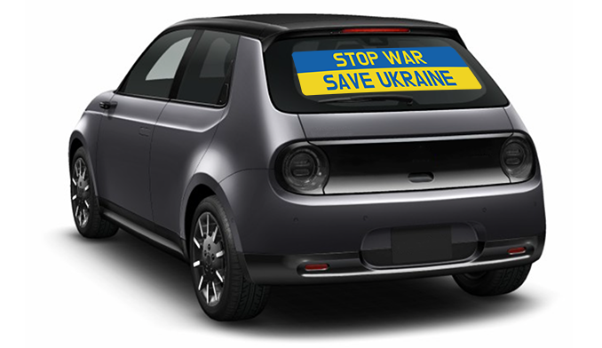 5,000円から5万円まで設定したキャンペーン参加費が寄付金となり、参加者にはウクライナ国旗をモチーフにした応援ステッカー(上画像)が送られます。ステッカーを車のリアウィンドウに貼り、いつものように運転することで支援となります。参加費は全額、国連UNHCR協会を通じてウクライナに寄付します。ステッカー制作費や送料等は当社負担とさせていただきます。