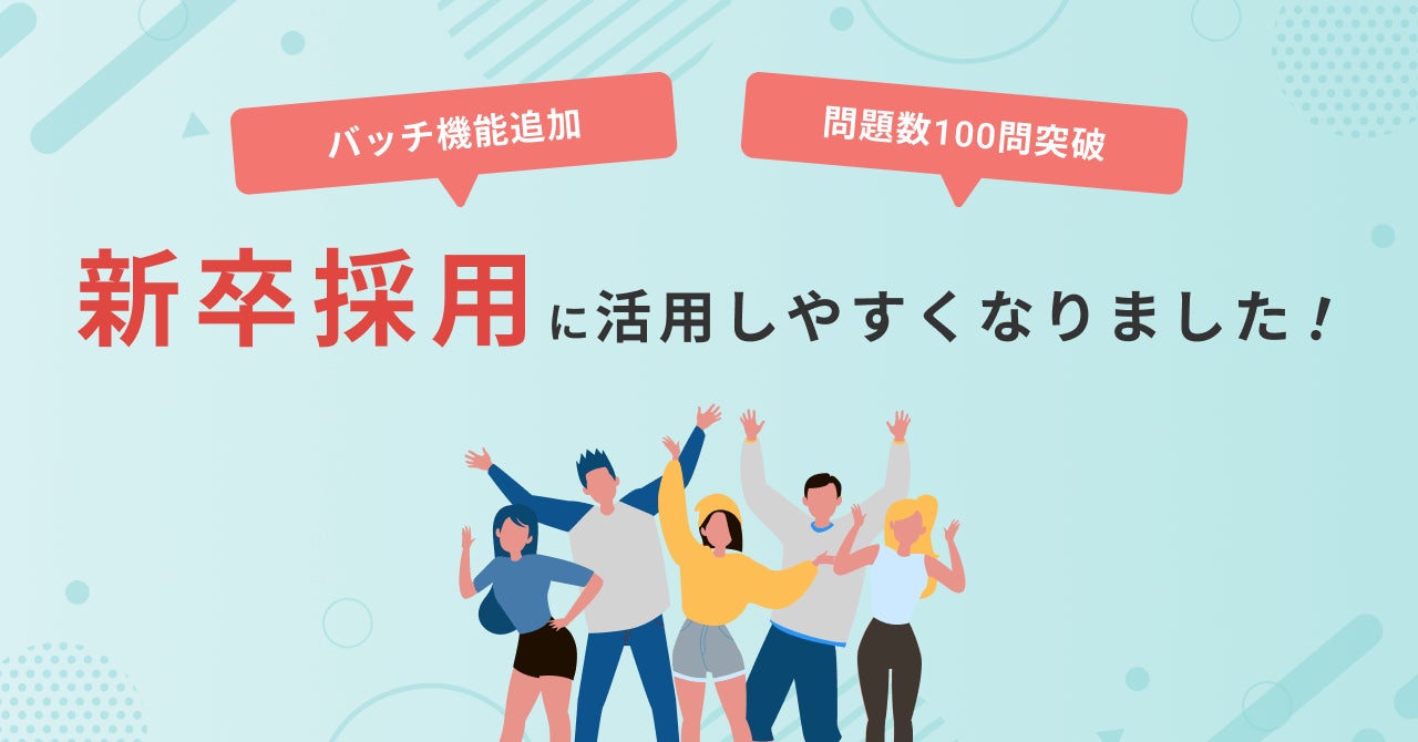 コーディング試験サービス『HireRoo』、バッチ機能追加と問題数100問突破のお知らせ