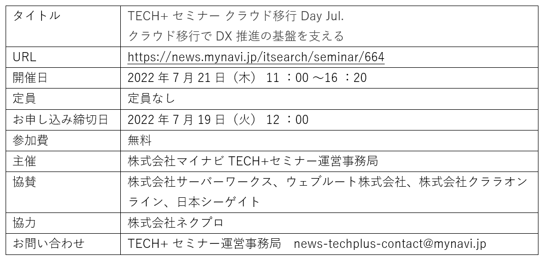 ■TECH+ セミナー クラウド移行 Day Jul. クラウド移行でDX 推進の基盤を支える:開催概要