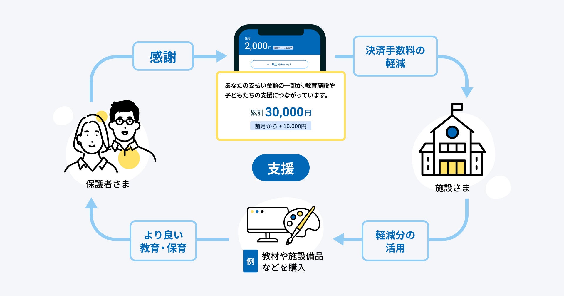 そして先日、新たに「enpayウォレット」の提供を開始いたしました。「enpay」を利用中の教育施設に、「enpayウォレット」を通じて支払いを行うだけで施設や子どもたちを支援することができるユニークな決済手段です。