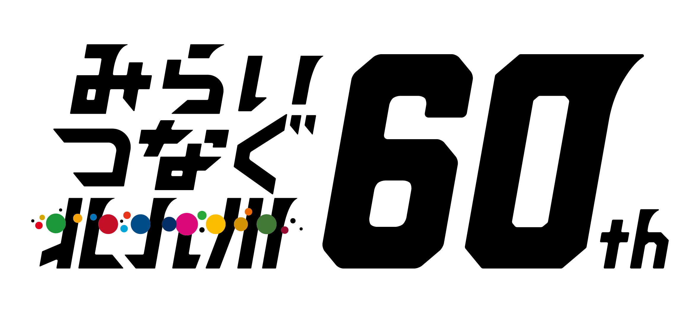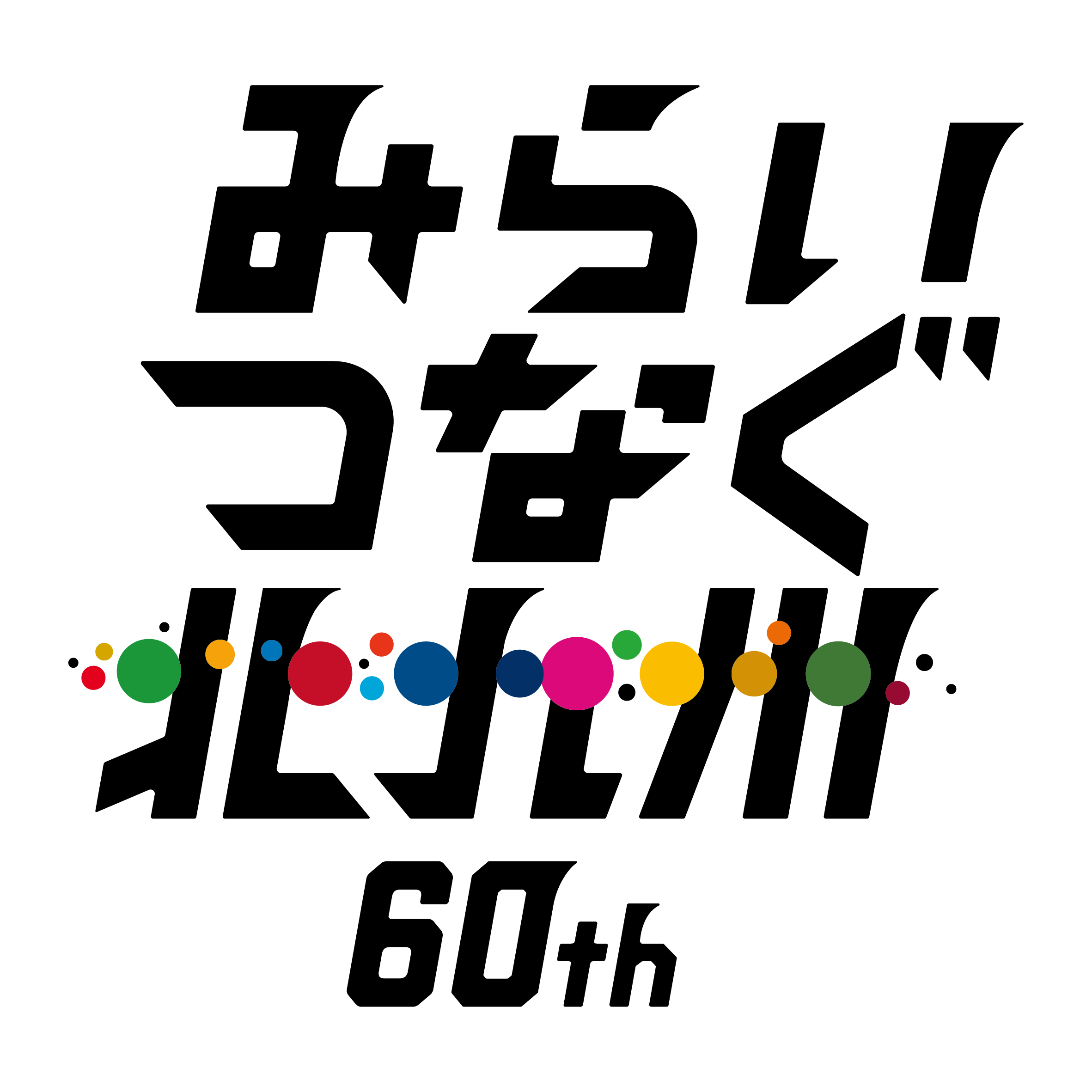 市制60周年という節目の年を本市にかかわる全ての方々と祝い、先人が築かれた功績に感謝するとともに、これからの未来を創造し、今後一層の発展につなげるため、「みらい つなぐ 北九州」をキャッチフレーズに、1年間にわたり周年事業を実施します。