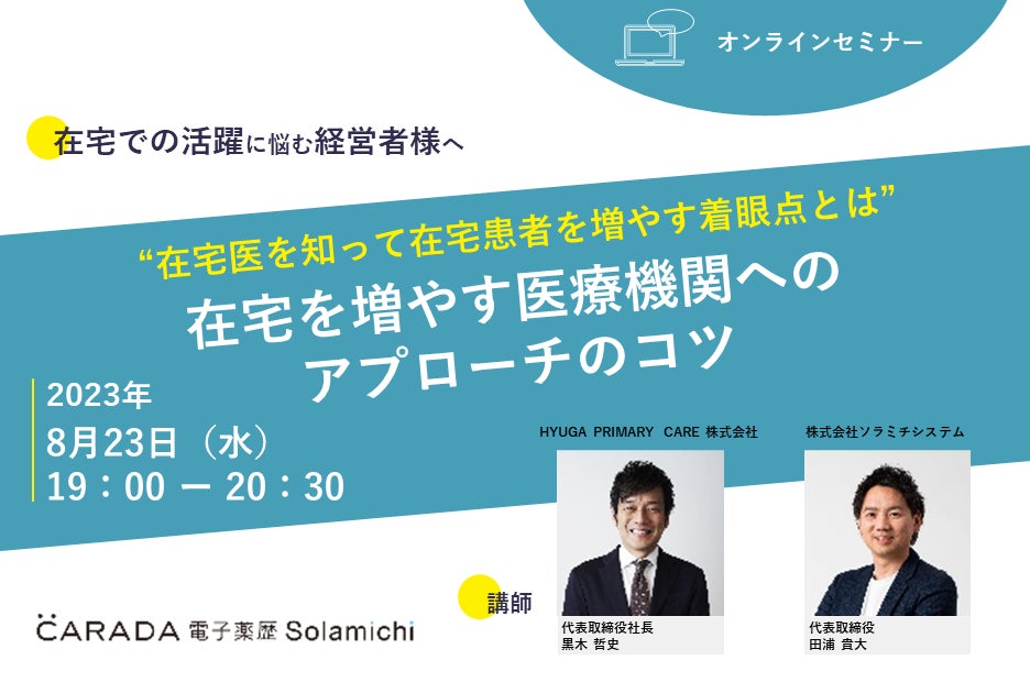 【ソラミチシステム:無料オンラインセミナー8月23日開催】在宅を増やす医療機関へのアプローチのコツ