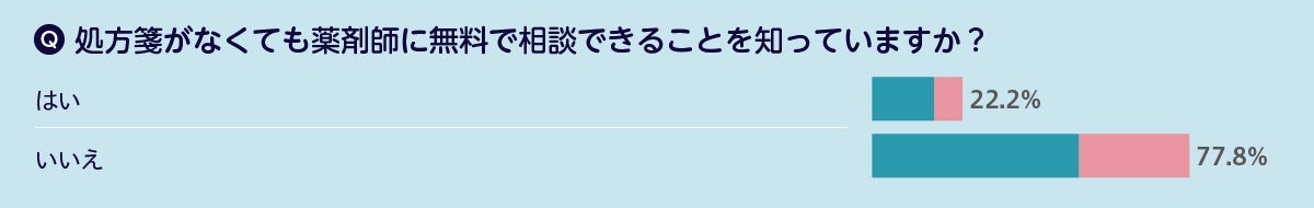 本調査から、かかりつけ薬局を持つ人の割合は約半数にのぼっているものの、立地条件で選んでいる人が多く、信頼、相談ができる薬剤師がいるかを重視している人が少ない傾向が見られました。また、薬剤師に相談したことがある人、処方箋がなくても相談できることを知っている人はそれぞれ20%前後と少ない結果となり、薬剤師は処方箋の有無に関係なく、患者さんの不安や疑問に寄り添う存在であるにも関わらず、そのように認知されていない様子が浮き彫りとなりました。