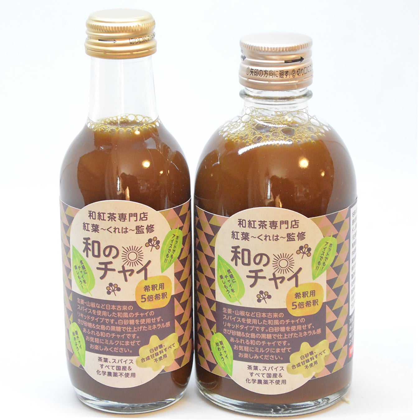 無農薬で作られた和紅茶に、佐賀県産のほうじ茶、陳皮、クロモジなどをブレンドした紅葉~くれは~の主人こだわりの和チャイシロップ。