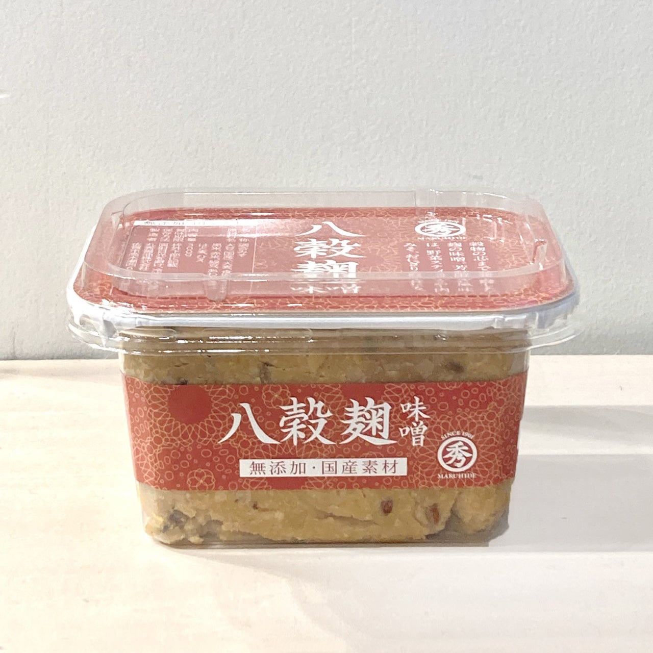 大麦、うるち米、黒米、赤米、あわ、緑米、はと麦、ひえ。国産の8種類の穀物を、芯まで発酵した麹で作りました。