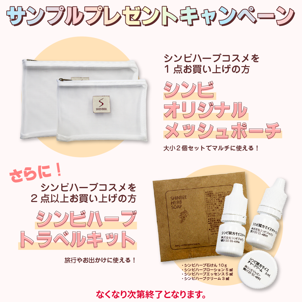 さらに2点以上お買い上げいただくと、旅行やお出かけでお使いいただけるシンビハーブコスメのトラベルセットをプレゼントいたします。