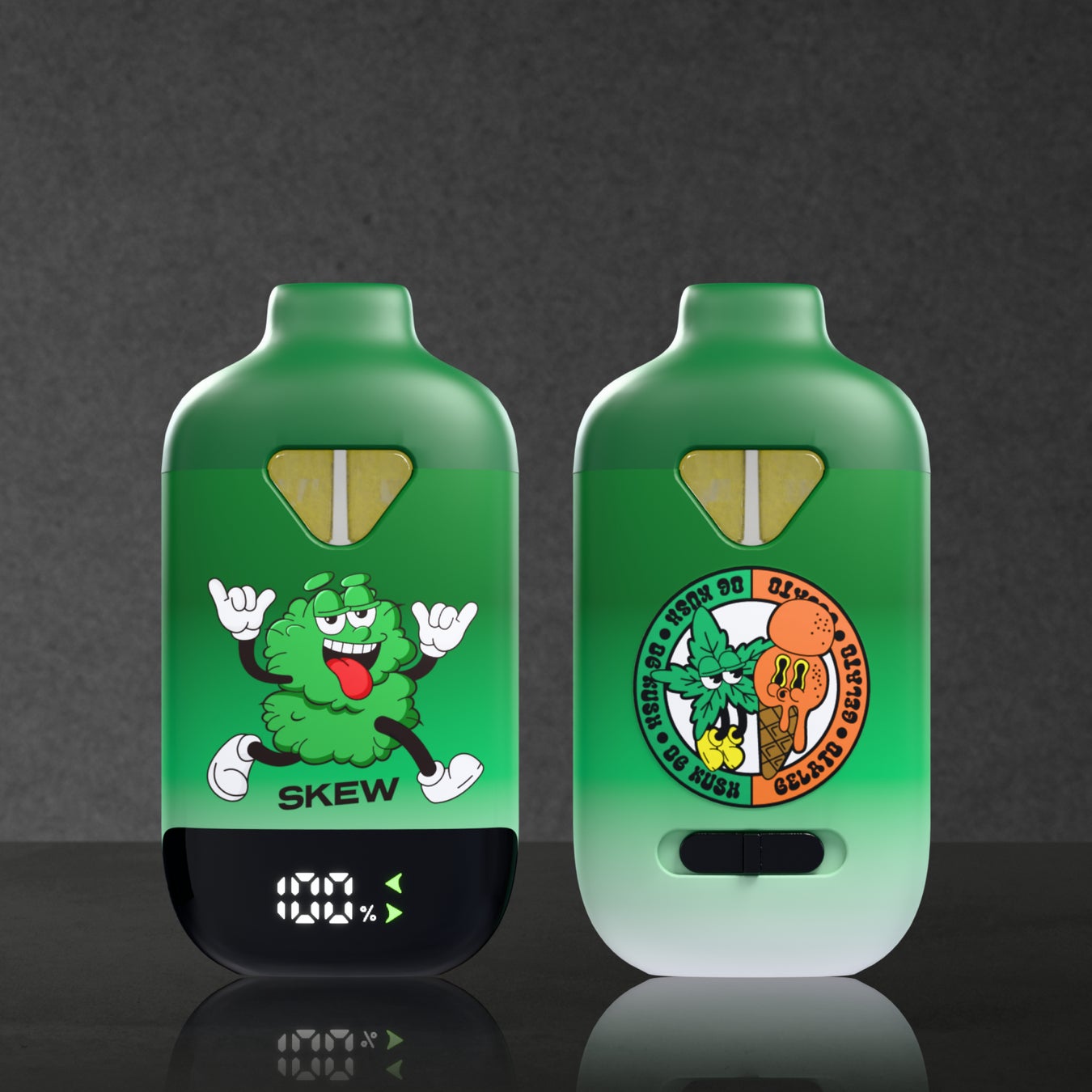 持ち運びやすいコンパクト設計ながら、自動加熱機能やオーバーヒート防止機能を備えた、ハイスペックな使い捨てタイプのCBDベイプです。吸い口下のスライドスイッチを切り替えることで、2種類・3パターン(OG KUSH・GELATO・MIX)のフレーバーをシーンや気分に合わせて楽しむことができます。本体の左右には、それぞれ85%以上のカンナビノイドを配合したリキッドが1mlずつ充填されており、約400〜500回の吸引が可能です。