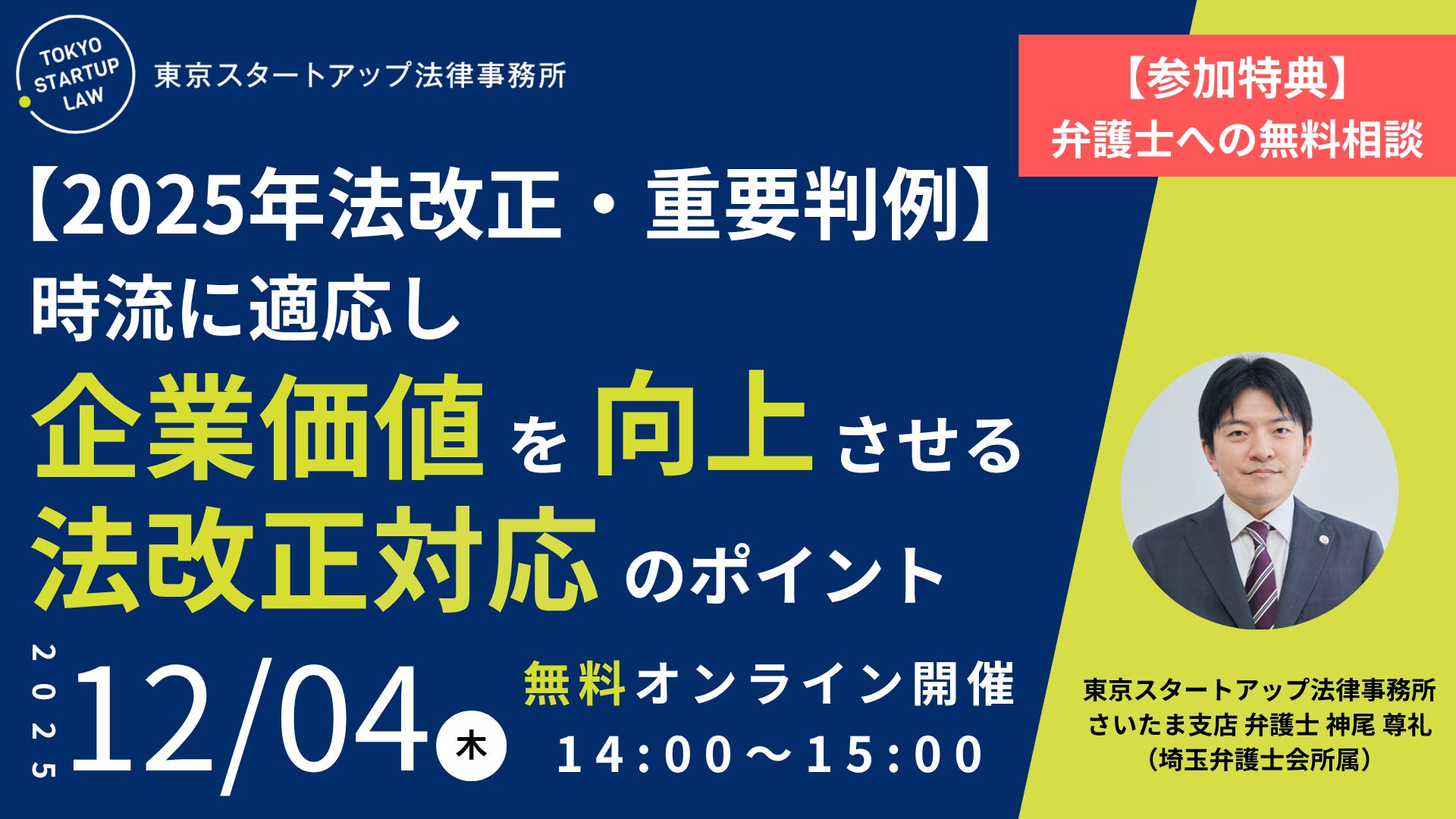 「【2025年法改正・重要判例】時流に適応し企業価値を向上させる法改正対応のポイント」を2025年12月4日(木)に無料・オンライン開催!