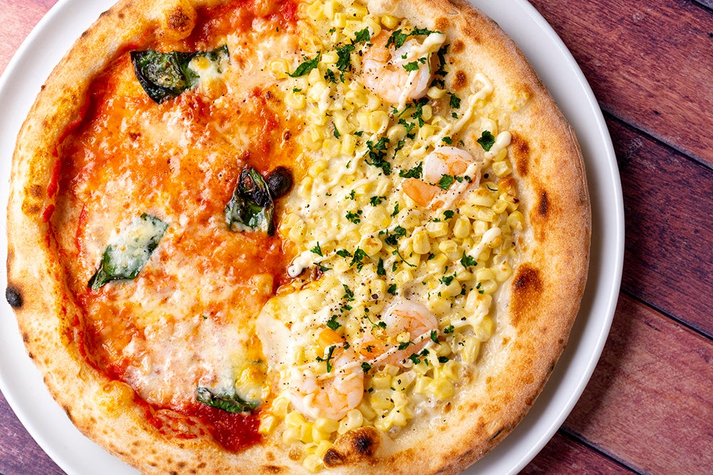 北海道美瑛産のとうもろこしの甘さは格別!ピッツァ人気№1の北海道マルゲリータのハーフ&ハーフ