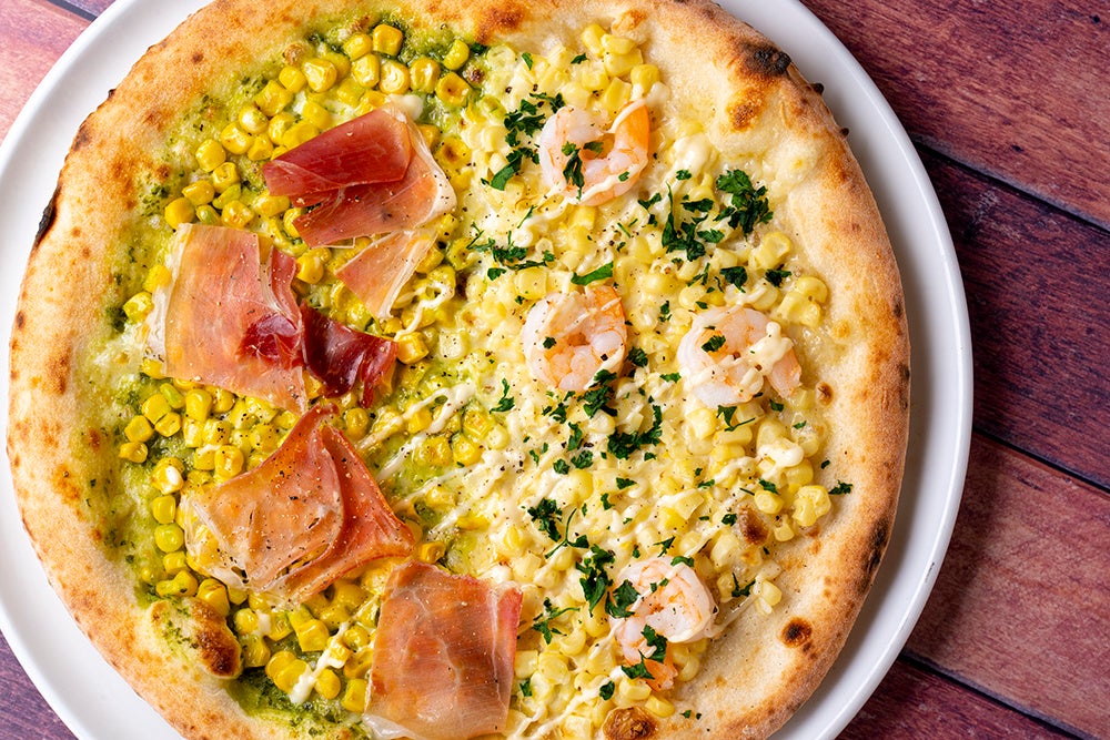 北海道小麦100%のピッツァ生地にとうもろこしが400粒以上!北海道美瑛・十勝の2色のとうもろこしを楽しめるピッツァが期間限定で登場!