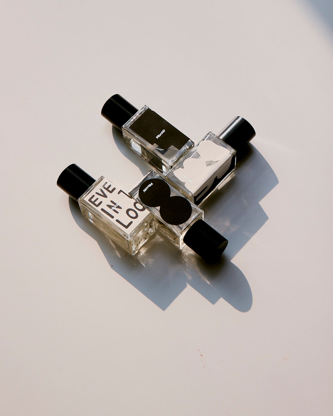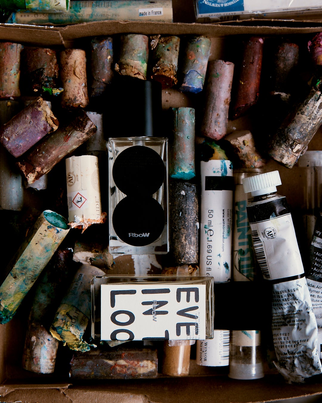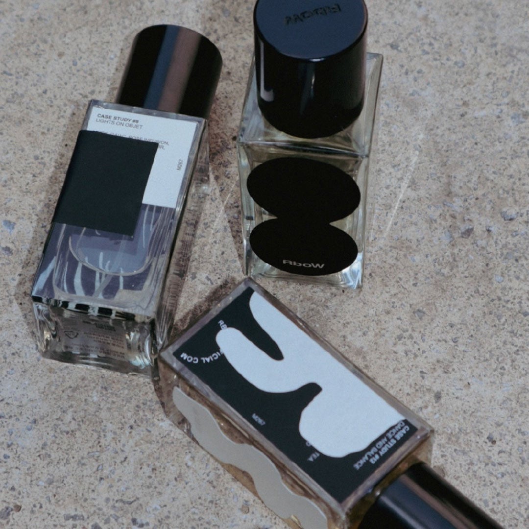 シムライズとフィルメニッヒの調香師が、RboWの3つの香水をつくりました。独創的でアヴァンギャルドな調香師らとのコラボレーションは、まさにRboWが追求するアートそのものです。3つの香りは個性的ながらも洗練され、安らげる香りです。ケーススタディというコンセプトは、アートの考察を基に、ラベル、パッケージにデザインされています。