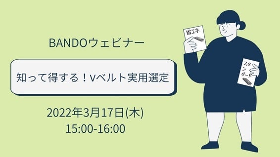 バンドー化学株式会社(本社:兵庫県神戸市)は、機械設計に携わる皆様に向けたウェビナー「知って得する!Vベルトの実用選定」を以下のとおり開催いたします。