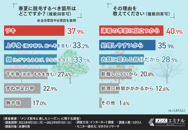 また、脱毛開始シーズンだけでなく、それぞれの季節でどのような部位を脱毛すべきかも明らかになりました。