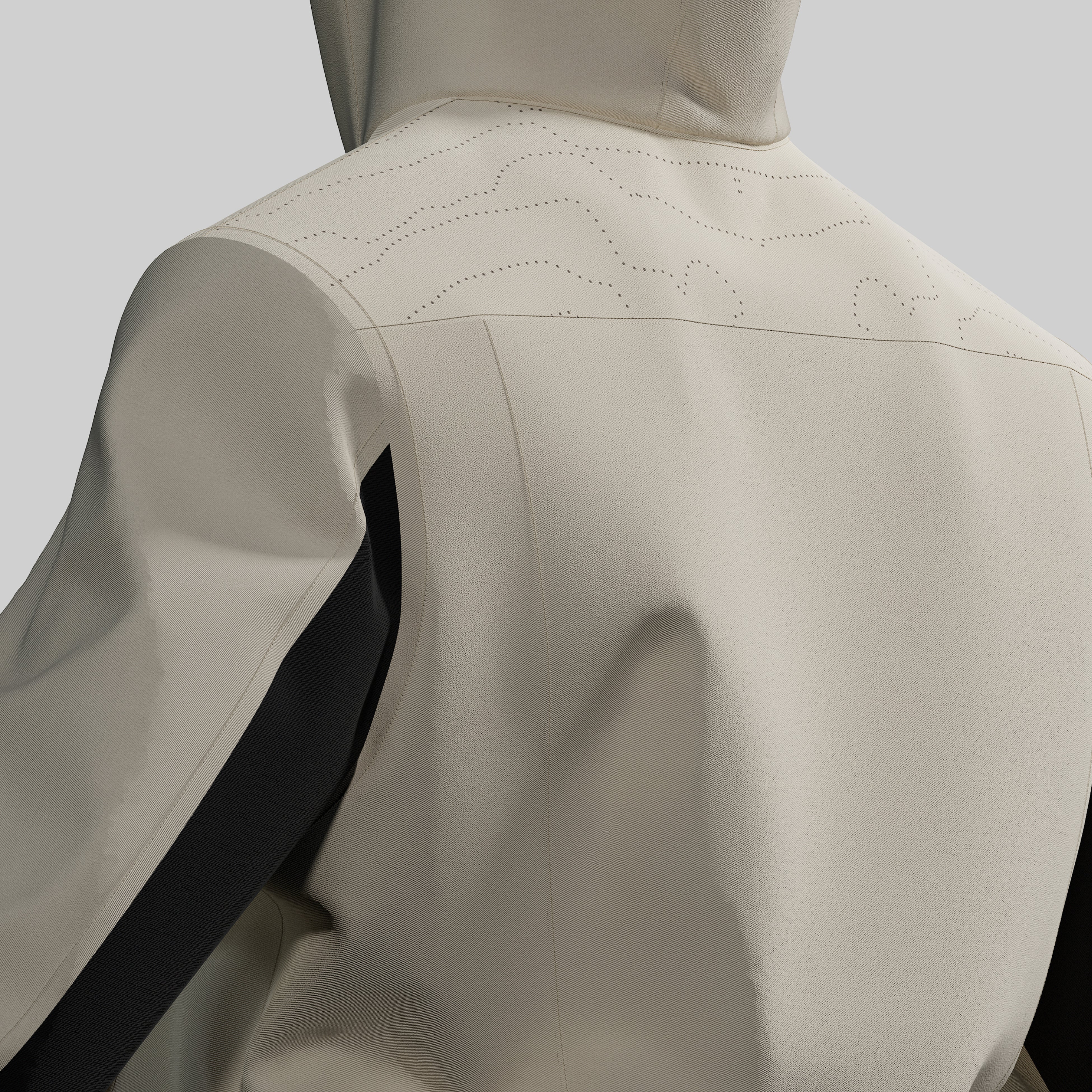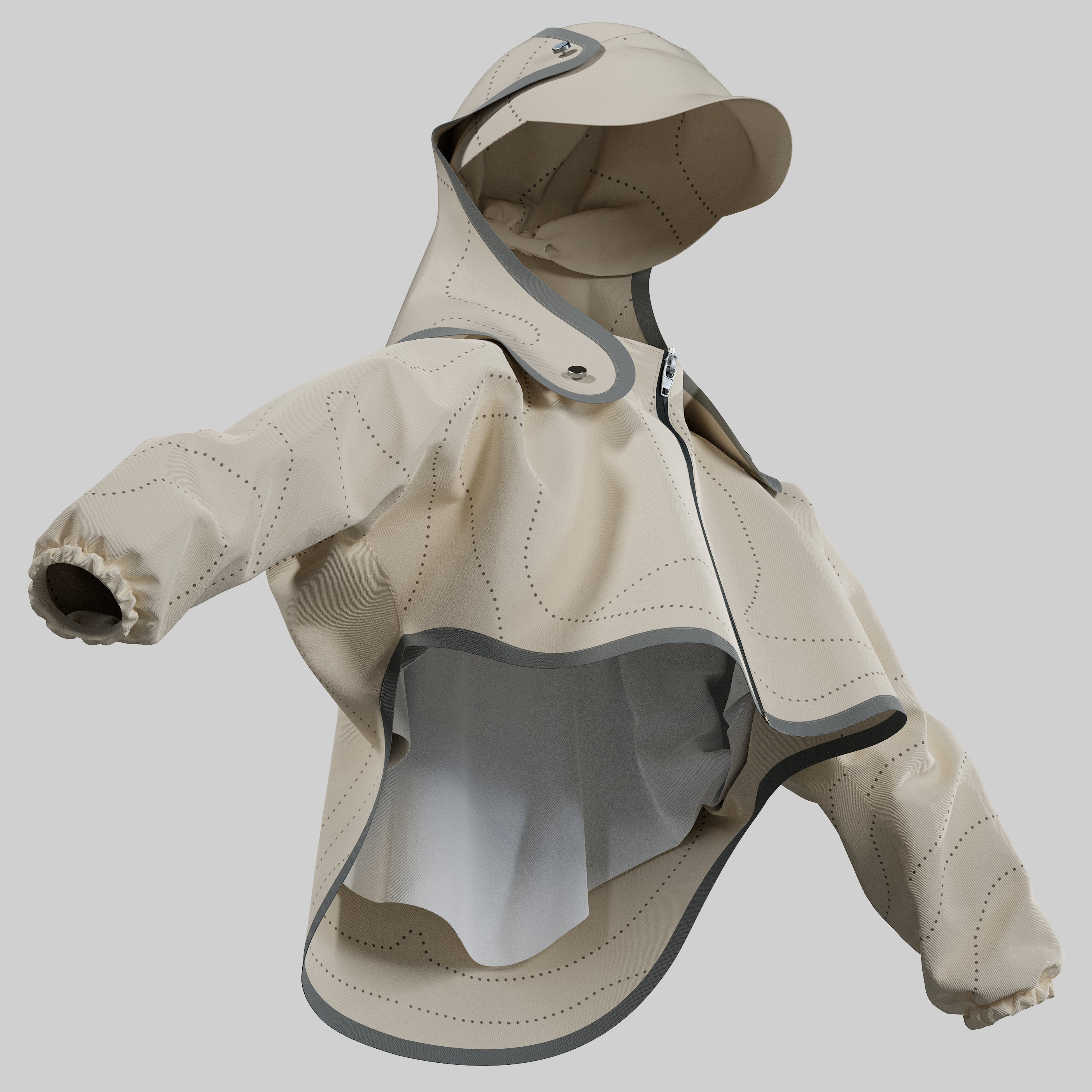 本プロジェクトにおいて、Synfluxはデザインパートナーとして、アルゴリズムと3D技術を活用してテキスタイル廃棄を削減する独自のデザインシステム「Algorithmic Couture(アルゴリズミック・クチュール)」の提供に加え、ガーメントデザイン、生産に向けたR&D(調査・開発支援)、3D CG制作までを包括的に手掛けました。 素材の持つ熱遮断機能とAIによる最適化設計を融合させることで、「地球沸騰化」から人々のいとなみを守るアパレルプロトタイプを共同開発しています。