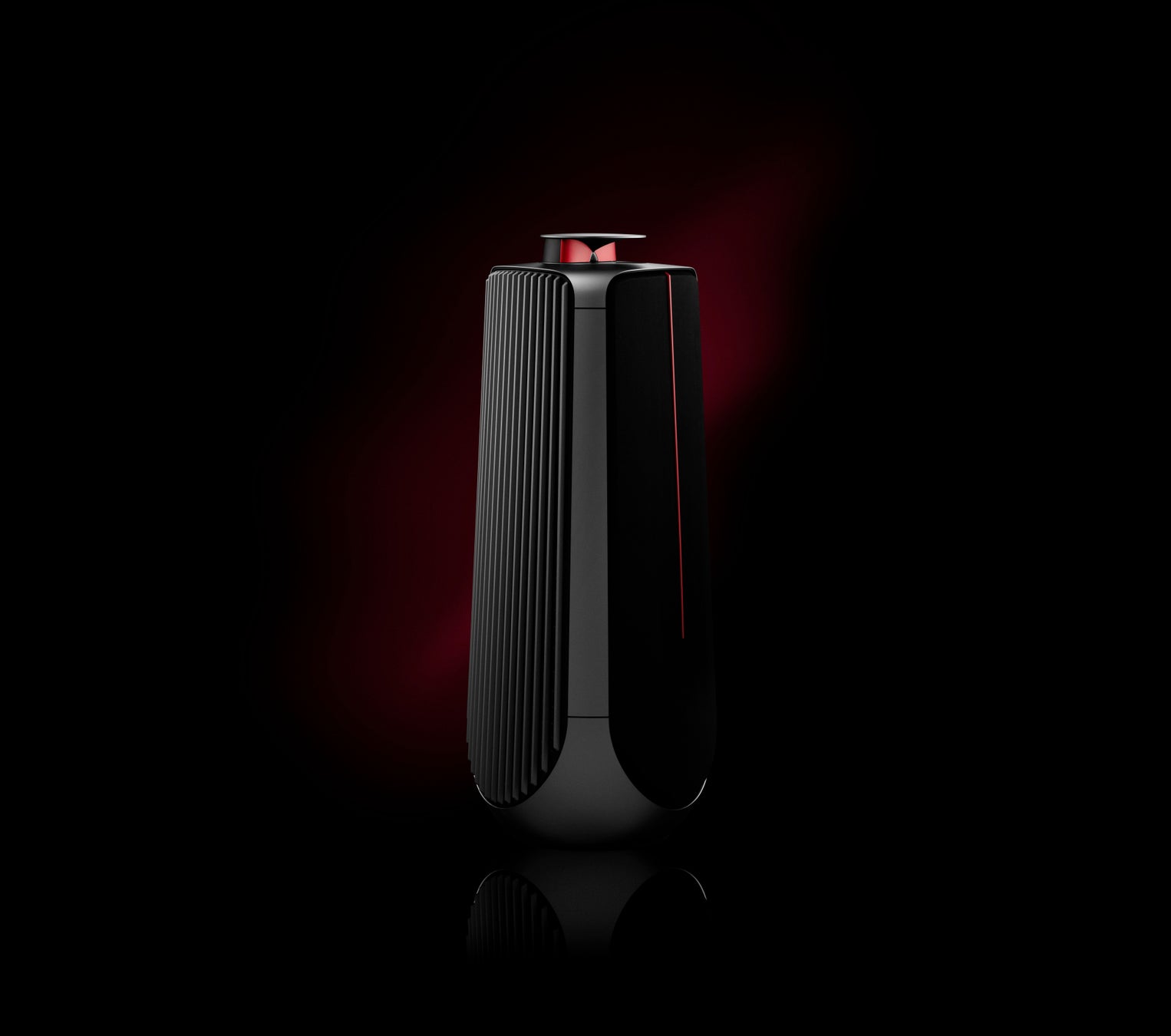 Beolab 50 Ferrari Editionは、Ferrariの象徴である赤いレーシングラインをイメージした赤いアルマイト仕上げのスプリットラインを本体に入れることにより去年発売されたFerrariとのファーストコレクションとの視覚的なつながりを表現しました。スピーカーを柔らかく包み込む漆黒のファブリックに通る1本の赤いラメがプロダクトを象徴的なものにしています。この大胆な赤を使ったデザインのディテールは、スピーカーの両サイドにある精密に削り出されたGrigio Corsa色アルミニウムのラメとは対照的に、メタリックな輝きで光を反射します。