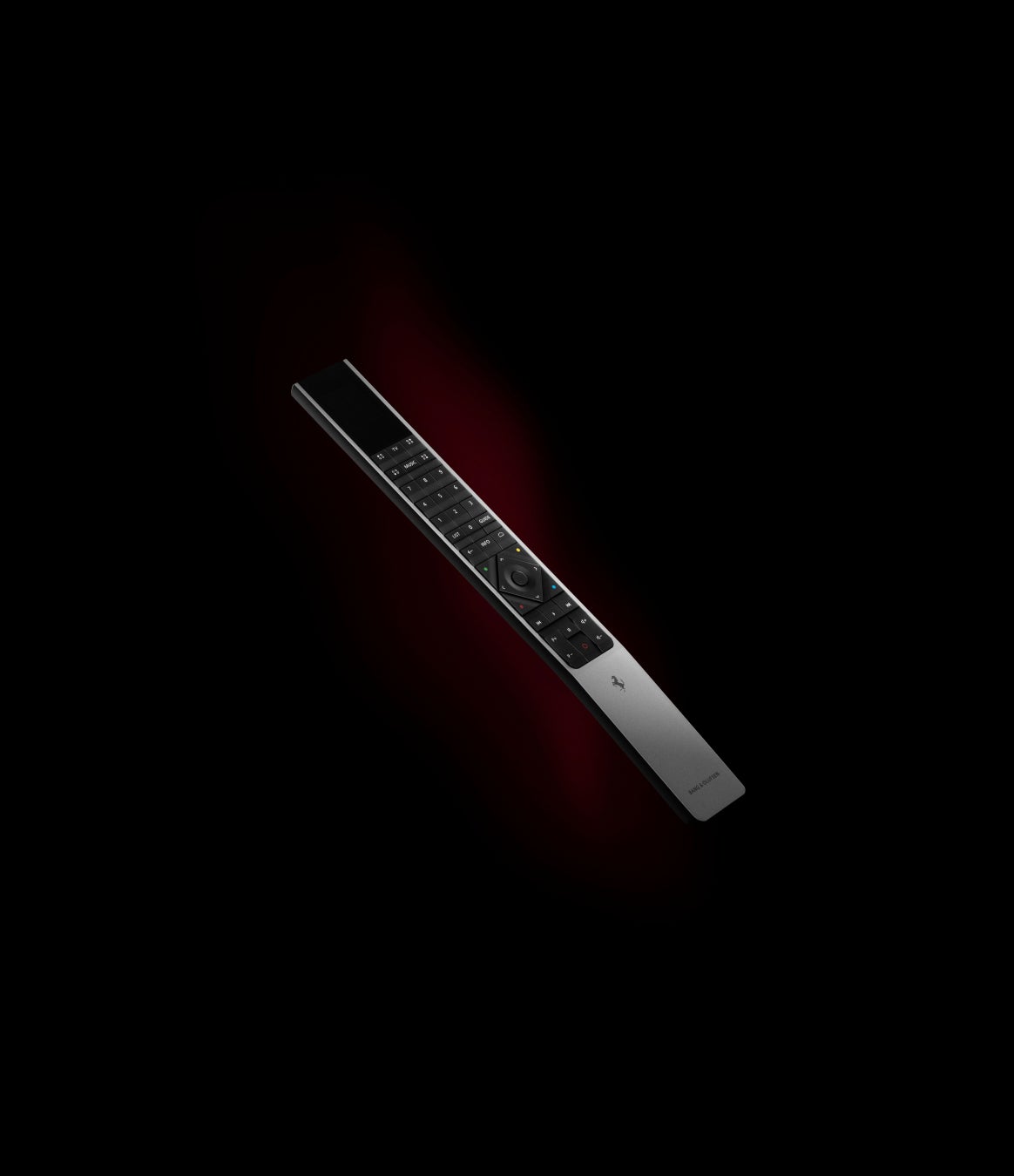 電動スタンドとBeoremote One(ベオリモート ワン)が、パワーと精度の高いディスプレイを完成させます。1枚のアルミニウムから削り出され、完璧な重みを持つGrigio Corsaカラーのリモコンには、Ferrariの跳び馬とBang & Olufsenのロゴがレーザー刻印されており、世界に1つだけのコレクションとなっています。Beovision TheatreとBeolab 50を組み合わせれば、パワフルなだけでなく多目的にお使いいただけます。