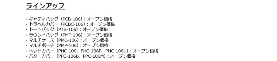 ※PMP-106マルチポーチとPCBC-106トラベルカバーはPRGR直営店、PRGR GINZA ONLINE SHOPアイテムとなります。