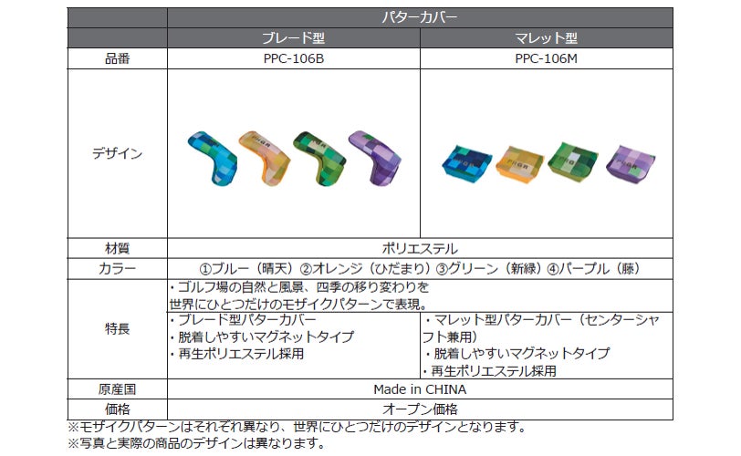 ※全てのアイテムのパープルはPRGR直営店、PRGR GINZA ONLINE SHOP限定カラーとなります。
