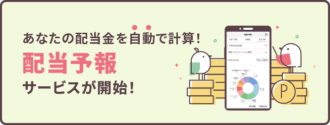 2024年より制度が改訂される新NISA(新しいNISA)を見据え、お客さまの資産形成を長期に渡ってサポートをしていくことを目的に、2023年6月23日(金)、保有株式から生み出される「年間配当金総額」「配当利回り」を一目で確認できるサービス「配当予報」のサービス開始いたしました。