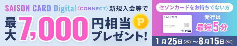 大和コネクト証券3周年を記念して、SAISON CARD<CONNECT>への新規入会等で、最大7,000円相当をプレゼントいたします!