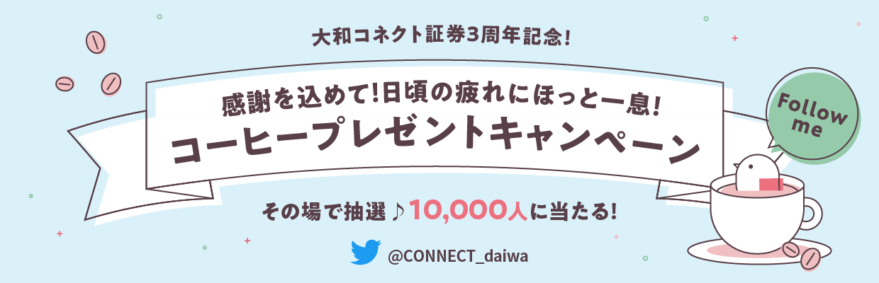 ●第4弾:大和コネクト証券3周年記念!感謝を込めて!日頃の疲れにほっと一息!コーヒープレゼントキャンペーン