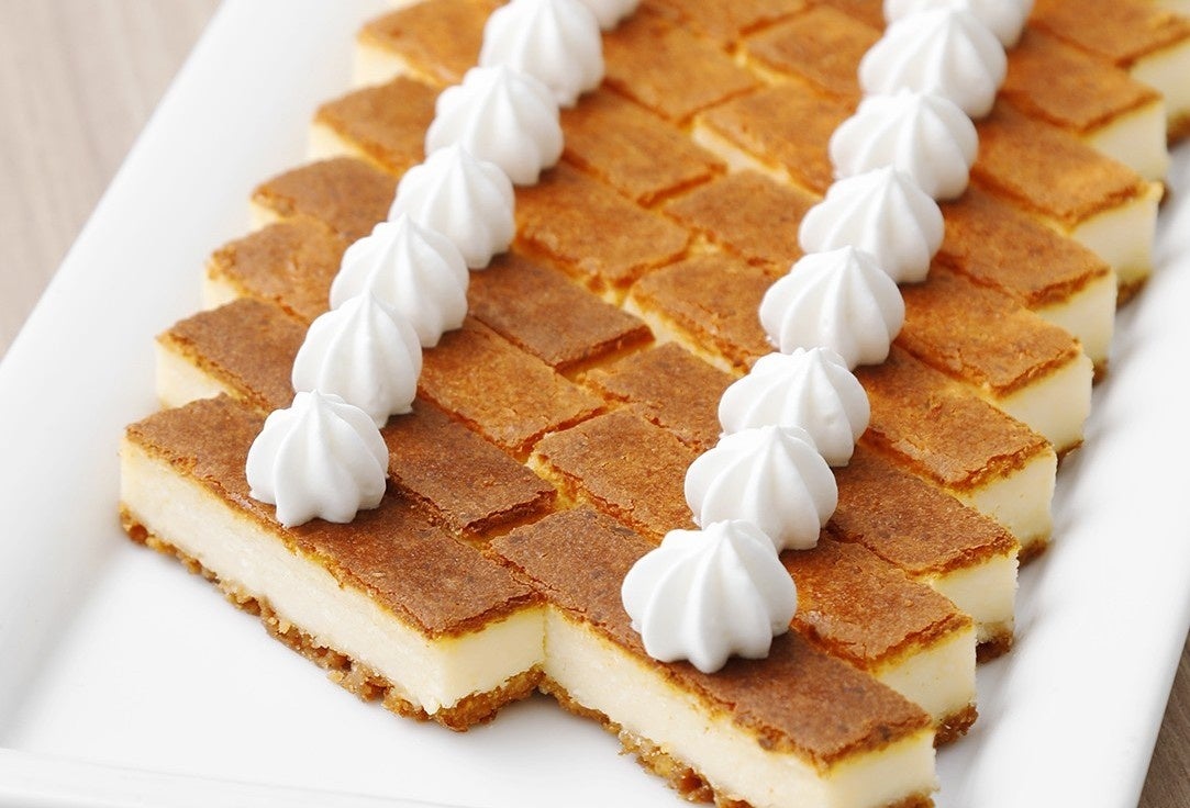 砕いたサブレの上にクリームチーズのアパレイユを流し込み、香ばしく焼き上げた定番のベイクドチーズケーキです。