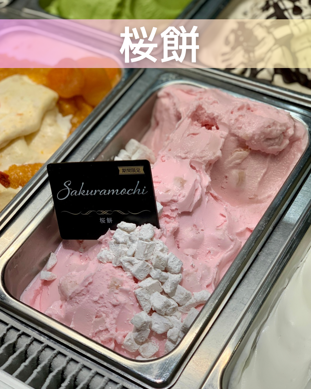 さくら香るミルクジェラートにお餅を混ぜ込みました。