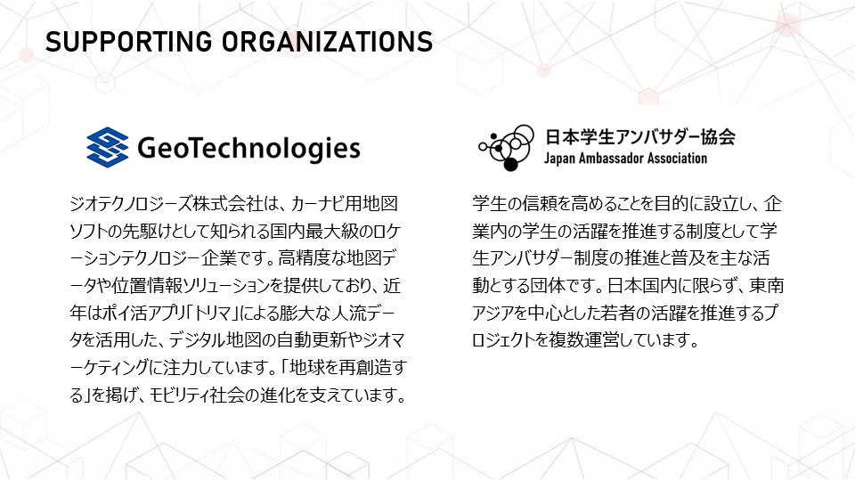 本イベントでは、遠方から参加される学生の方を対象に交通費補助を予定しております。社会人の方は交通費補助の対象外となりますので、あらかじめご了承ください。