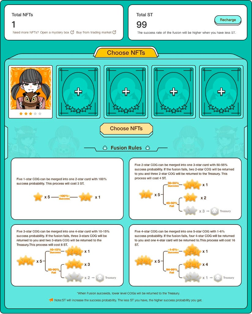 OVO(ovo.space)は設立からすでに2年経ちますが、現在OVOの「Collection」カテゴリーにはにゃっちーず(Nyathees)とCOG(Cuty Owl Girls)二つのIPコンテンツを収録していますが、プラットフォームと長期的にバウンドしたIPコンテンツのみを収録するカテゴリーとして、ユニークなNFT Mining機能が実装されることが最大の特徴です。OVO Tokenのリスティング後、「Collection」に収録するIPコンテンツを順次に拡大していく予定です。