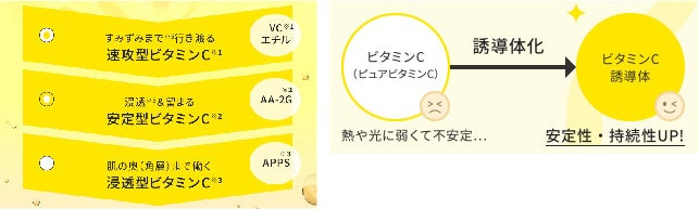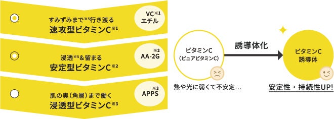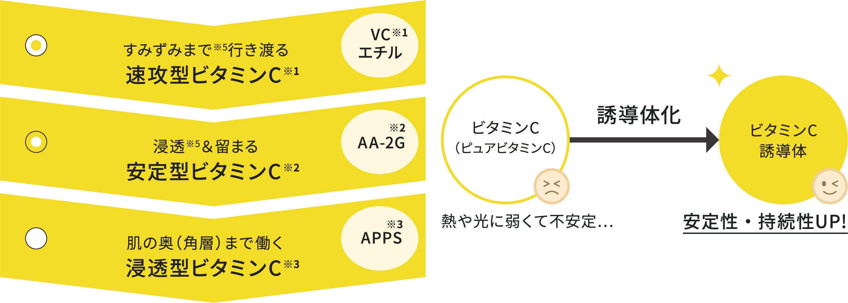 それぞれ特徴が異なる3種のビタミンC誘導体※1・2・3を贅沢に配合。