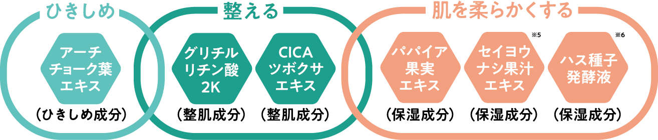 肌を柔らかくしつつ、キメの整ったうるおった肌に仕上げます。
